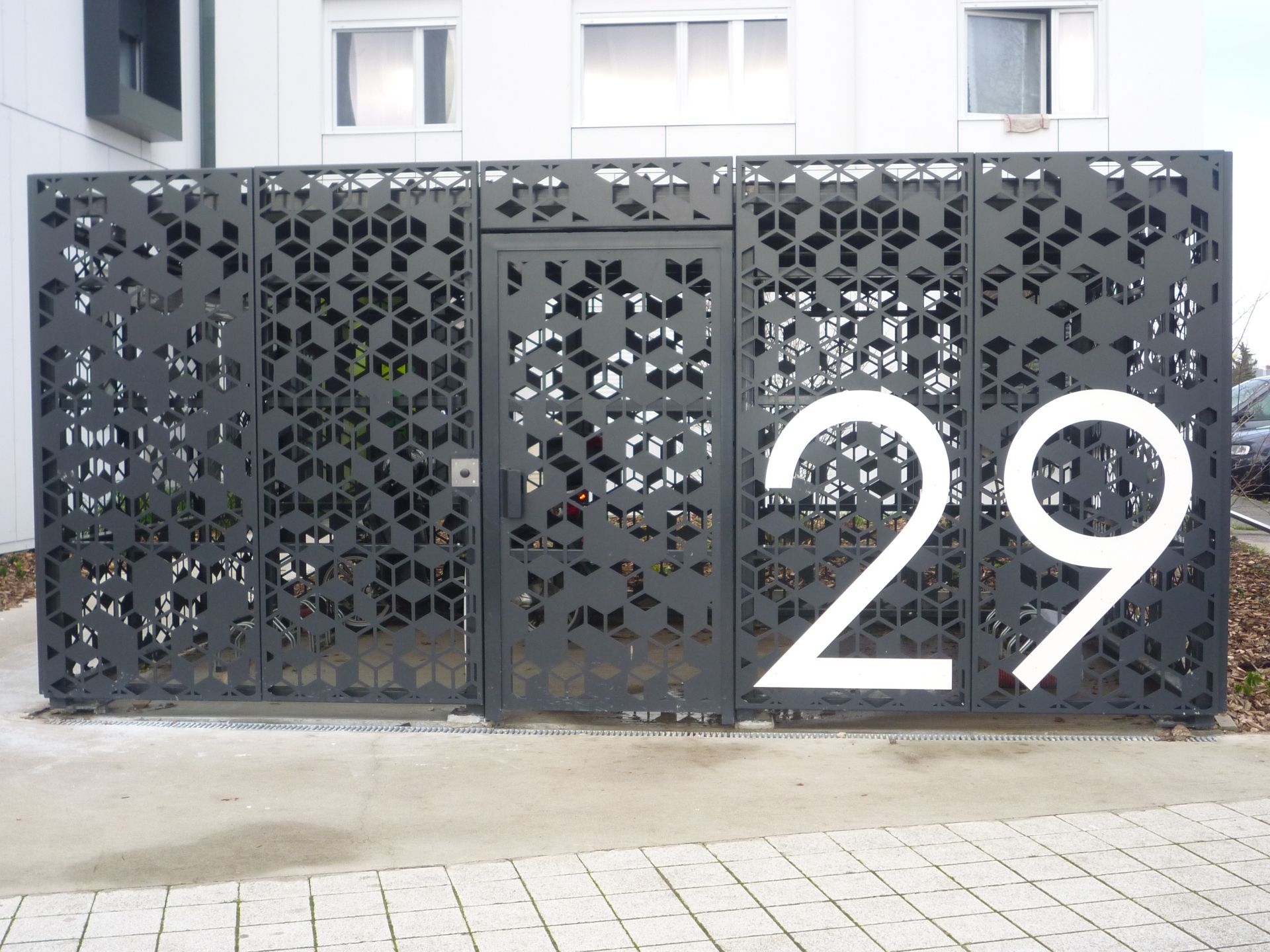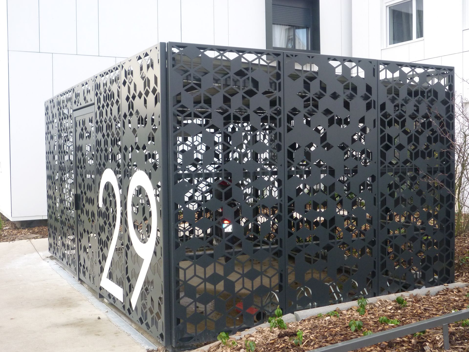 Les finitions extérieures peuvent être soit la tôle découpée laser, soit un matériau composite, soit un caillebotis, soit un treillis soudé ou un métal déployé.